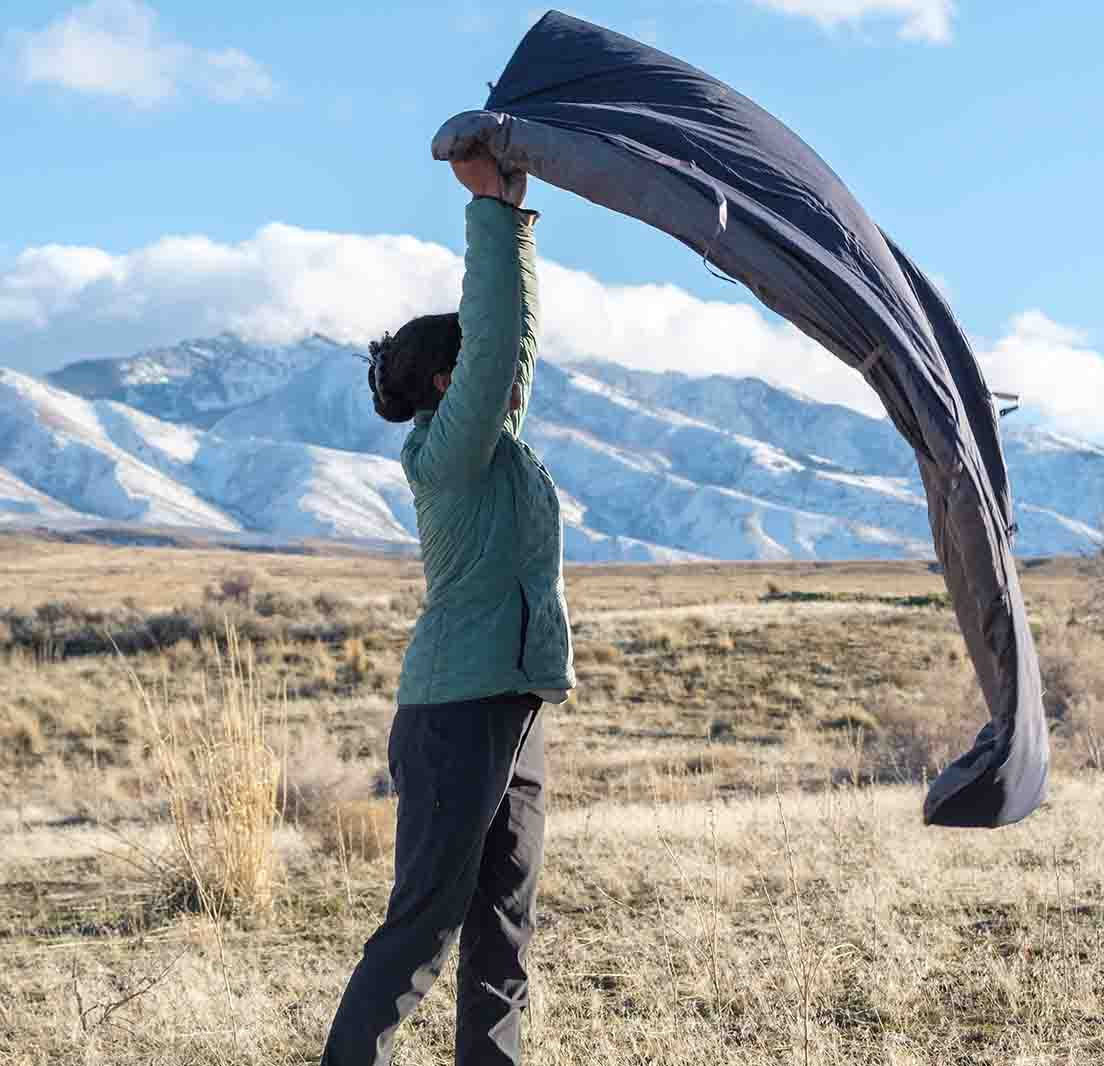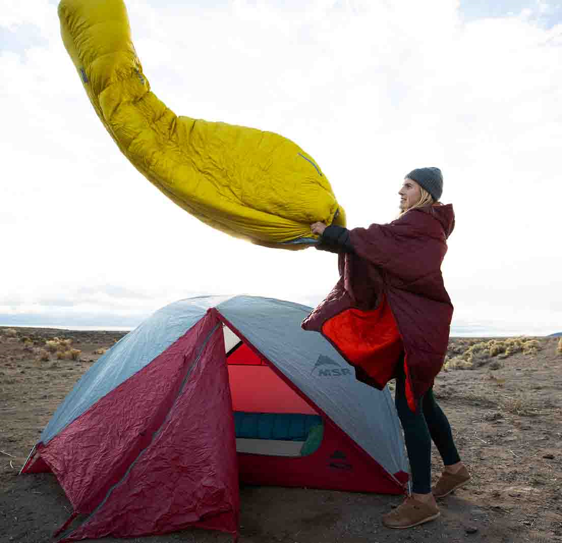 2. Luft den dagligt: En fugtig sovepose er både tungere, dårligere til at isolere og kan udvikle mug (og en knap så lækker lugt). Vend posen på vrangen og hæng den til luftning hver morgen – gerne i flere timer. Undgå dog for meget direkte sol, da UV-stråler langsomt nedbryder stoffet. Regner det non-stop? Så lad den ligge inde i teltet, vendt på vrangen.