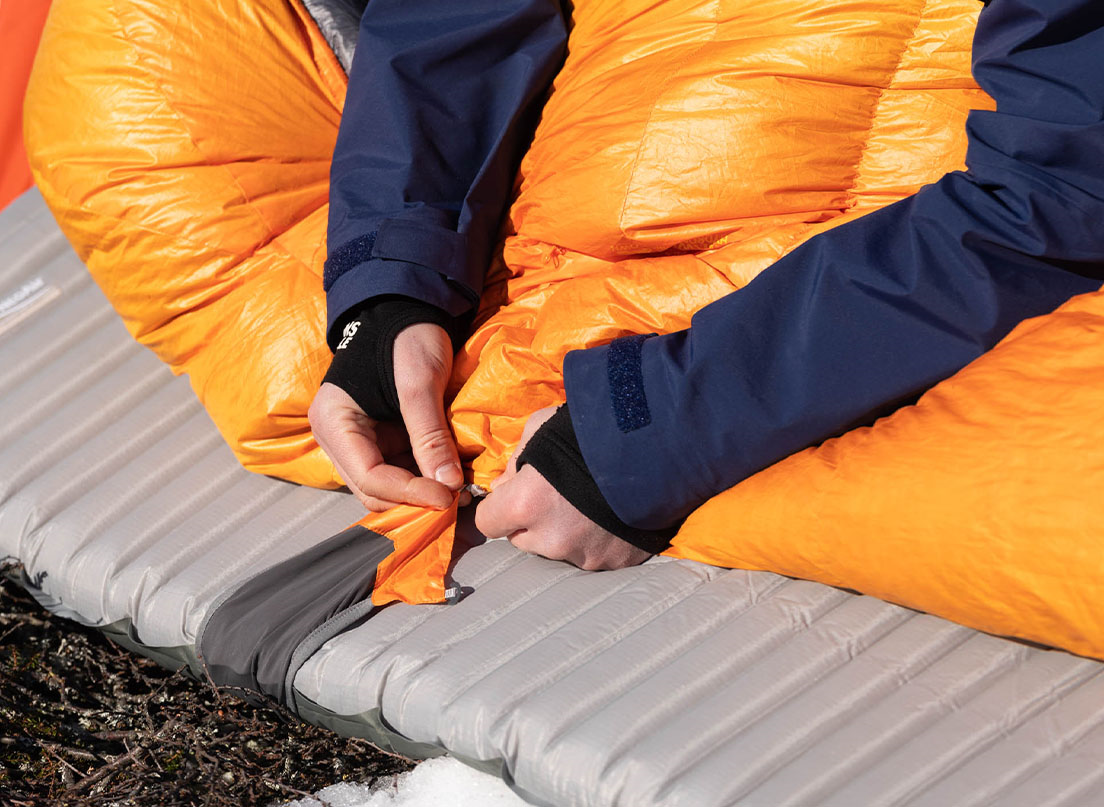 Sørg for et godt liggeunderlag. Uden isolering mod jorden hjælper selv den bedste pose ikke.