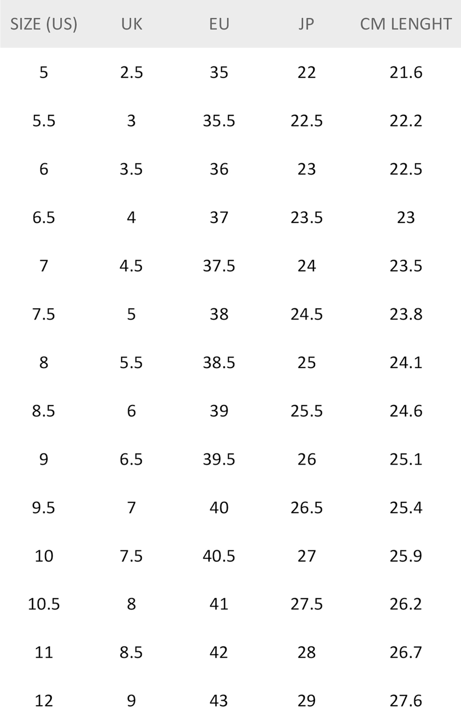 Bemærk at størrelsesguiden er vejledende og kan variere fra produkt til produkt. Vær også opmærksom på, at fx skostørrelser bliver påvirket at din fods bredde/højde, hvordan skoen er konstrueret og ikke mindst tykkelsen på dine sokker.Sådan måler du foden:Placer foden op ad en væg, og mål til enden af den længste tå. Mål gerne begge fødder, da der ofte er forskel på længden.Find det længste mål i kolonnen "cm length", og find din størrelse.