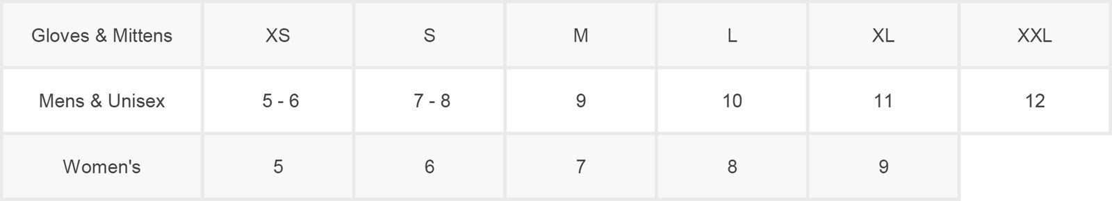 To ensure you purchase the perfect fit glove for you, please follow these simple steps:Relax your dominant hand and measure with a tape measure around the knuckles (excluding the thumb) in inches (your left if you are left handed and your right if you are right handed)The size that you measure in inches, is your glove size, so if you measure 9 inches, you will need a medium glove.Please remember that if the gloves are too tight on your hands they may make your hands feel cold, so if in doubt go up a size!